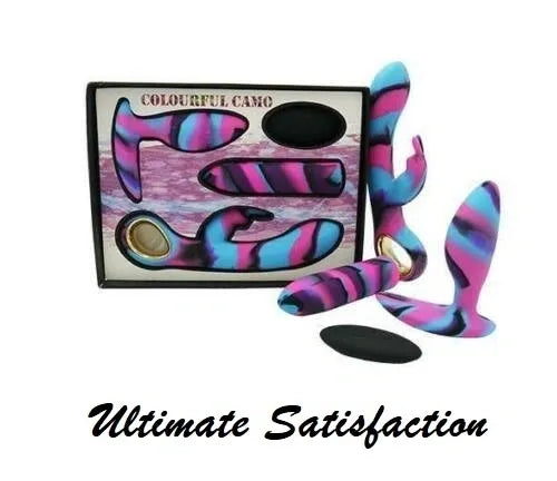 Colorful Camo lovers kit feature three of the collections most popular products Dini packs intense please into a soft flexible silicone rabbit vibrator Tracer is a powerful bullet packed with 3 speeds and 12 functions of high intensity vibrations Idyllic remote control, rechargeable le butt plug is designed for discreet intimate exploration.