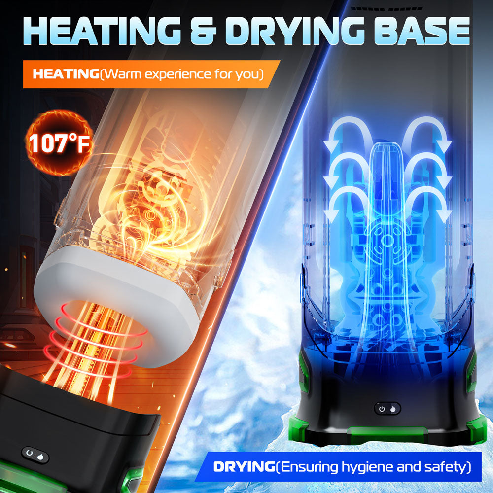 Experience Unmatched Pleasure with 10 Vibrations and 10 Thrusting Modes Dive into the ultimate pleasure revolution with our 4-in-1 male masturbator. This marvel of modern design offers 10 thrilling vibration modes and 10 powerful thrusting settings, all visible on an intuitive LCD screen that puts control at your fingertips. Enjoy a tantalising warmth with intelligent heating that reaches a cozy 41 C in just 20 minutes, setting the stage for a truly immersive experience. With 15 adjustable speeds and a smart drying feature, it’s a blend of cutting-edge technology and indulgent comfort. Crafted from premium materials, it transforms every moment into an unforgettable exploration of sensation and satisfaction. - Realistic material with lifelike texture - Ten thrusting modes using the right dial - Ten vibration modes for varied pleasure using the left dial - Includes a heating base that doubles as an internal dryer - LCD display shows which speed and thrusting setting is used - Medical-grade silicone, safe and non-toxic - Easy to clean and user-friendly to put together with magnetic guides - Length: 31 cm - Insertable length: 16.5 cm - Width: 10.2 cm - Weight: 1035 grams - USB-C Rechargeable - Charge the battery for 2-3 hours before first use. - Usage time: Approx 1 hour depending on usage. BONUS: Water based lubricant sachets included plus after-use cleaning wand!