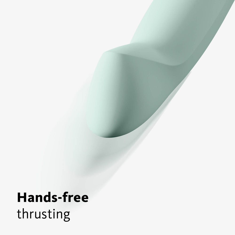 Close your eyes, lean back, and enjoy the powerful thrusting of STRONIC G FORTE. The toy shimmies back and forth on its own using FUN FACTORY’s exclusive patented technology. Indulge in the rhythmic thrusting and increase the intensity as you like. From a gentle, hands-free G-spot massage to powerful penetration, STRONIC G FORTE does it all. Get ready for explosive climaxes! Pulsators contain magnets that make the toy thrust back and forth on its own. This results in a constant, intense massage that’s perfect for stimulating the G-spot. If you like penetrative sex, then a pulsator is just the thing for you. WHAT’S SO SPECIAL ABOUT STRONIC G FORTE? The name says it all. The word ''forte'' comes from Italian and describes certain sections of music that should be played particularly powerfully. That’s just like how STRONIC G FORTE works - it’s a super-powerful toy with a strong motor and consistently firm strokes. Compared to its predecessor, STRONIC G FORTE is 40% stronger and requires 50% less charging time! Another special feature of STRONIC G FORTE is that it can be used hands-free. The toy moves back and forth by itself so you can use your hands to stimulate other body parts or just rest. Tired wrists are a thing of the past. Better yet, the toy has a special design that heightens your pleasure. The distinctive tip precisely targets the G-spot and the generous girth gives you an amazing feeling of fullness. WHAT’S BEHIND THE DESIGN? As with all FUN FACTORY toys, STRONIC G FORTE was developed and manufactured to the highest quality standards. The timeless design and the fresh colour Sage Green make this pulsator a modern lifestyle product. The loop handle looks crisp and makes the toy effortless to use. Every detail is high-quality, from the buttons to the substantial (but not overwhelming) weight to the velvety-soft silicone that feels incredible on your body. HANDS-FREE FUN Let your pulsator thrust on its own, using a pillow as a stopper to keep it in position. Give your hands a break and enjoy the stimulation until you climax. UPGRADE YOUR ORAL Let STRONIC G FORTE pleasure your G-spot while your partner goes down on you. The combination is wildly hot. ONE, TWO, THREESOME Experience the thrill of a three-way, even with two people. Let your partner watch while STRONIC G FORTE gets you off. PRODUCT SPECS: - Type: Pulsator - Power: Rechargeable (with low battery warning) - Movement: 4 speeds & 4 patterns - Functions: Memory Function & Travel Lock - Dimensions: 19 cm and Ø 4 cm - Weight: 216 g - Battery Life: 2-3 hours - Charging Time: 6 hours - Materials: Body-safe materials, non-porous and hypoallergenic