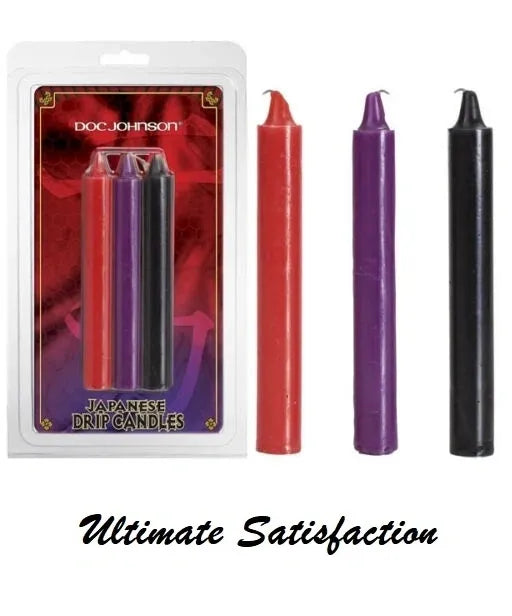 Candles are wonderful for setting the mood, but they're even better for 'pleasure and pain' sex play. Our low-temperature Japanese Drip candles are the favorite for adventurous couples everywhere. Their warm drip teases and tantalizes in a way you will never forget! Comes in a three-pack of Red, Purple, and Black candles. Great For Pleasure And Pain One of each Red, Purple, Black Clean Up Is Easy Care and Maintenance