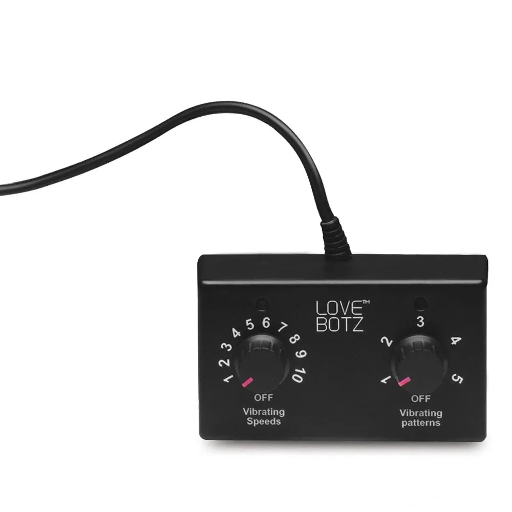 LoveBotz 50X Saddle Pro Sex Machine Get back in the saddle and see how long you can ride this Saddle Pro Sex Machine! Built to be durable and handle up to 220 kg, it's for those of us who want intense, long-lasting pleasure without worrying about getting too wild or rough for the machine to handle! The rideable base begs for your legs to wrap around it and for you to sit on one of the attachments as the intense, rumbling vibrations buzz through the toys inside you! Enjoy the sturdy, solid feeling of metal covered in thick plastic beneath you. Slip in a phthalate-free, premium grade silicone attachment. There are four delicious ones to choose from! Enjoy a large, realistic dildo. Try out a long dildo with a round, ball end to hit your sweet spots such as the A-spot, G-spot or P-spot. Get double penetrated with the dual attachment of a ribbed dildo and a small anal plug! Or enjoy rubbing one out on the delicious nub attachment! Choose between 5 speeds and 10 patterns of ultra-powerful vibration that can be controlled with the remote control! Never worry about dead batteries, either or even recharging! This machine plugs right into the wall so you can get full power all the time! After you're done playing, unplug the machine from the outlet before cleaning, then wipe the machine clean with a toy cleaner and a damp cloth and pat dry. Wash silicone attachments with warm water and toy cleaner between uses. Pat dry and store in a cool, dry location, away from direct sunlight and separated from other silicone toys. Grab your favourite water-based lube like Wicked Simply Aqua and have it nearby and ready. After plugging in the cords to the wall and the machine, pick an attachment to start with. If you aren't open yet, start with the nub and stretch it over the plastic base on top of the machine. As you mount the machine, rub the lube over the attachment and grab the remote with your free hand. Keep some towels nearby so your finger doesn't get too slippery and you can still control the remote! As you crank up the power, you may want to put on some loud music to cover the sounds of your moans when riding this intense sex machine! Switch up the attachments and work your way up to larger sizes such as the dildo or enjoy some double penetration if your backdoor is open for business! Show off for your lover or enjoy it at home when no one is around! Have an experience like you've never had before! After all, your pleasure is worth taking the time to do it right! 1. Stretch the silicone attachment of your choice over the plastic base on top of the machine. Both ends of the plastic base should be tucked into the pockets under the silicone attachment. 2. Connect the AC/DC adapter to the 3-prong port on one end of the machine and connect the controller to the 4-prong port on the other end. 3. Connect the AC/DC adapter to the power cord, then plug the power cord into a wall outlet. 4. Turn the knobs on the controller to cycle through 10 speeds and 5 patterns of vibration. Measurements: MACHINE: 39 cm Length x 34 cm Width x 26 cm Height. ATTACHMENTS: Nubbed: 1.5 cm insertable length, 3.8 cm widest diameter. Realistic: 14 cm insertable length, 4.2 cm widest diameter. Round: 14 cm insertable length, 4 cm widest diameter. Dual Penetration: Dildo: 12.7 cm insertable length, 3.7 cm dildo widest diameter. Anal Plug: 7.1 cm insertable length, 2.8 cm widest diameter. Weight Capacity: Holds up to 220 kg Materials: ABS plastic, silicone, metal Colour: Black, Pink Note: AC input: 110V-230V, DC output: 36V. Australian power cord. Battery Usage: MAINS POWERED