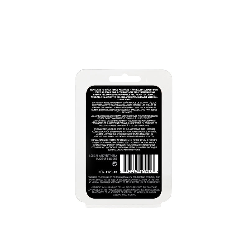Renegade Fireman Rings are made from exceptionally soft liquid silicone for a comfortable fit. Fireman rings ensure prolonged performance and heighten climax. Available in assorted colours and sizes. Suitable with all lubricants. - Product Weight: 26 grams - Product Dimensions: 4 cm x 4 cm x 1.1 cm - Product Material: Silicone