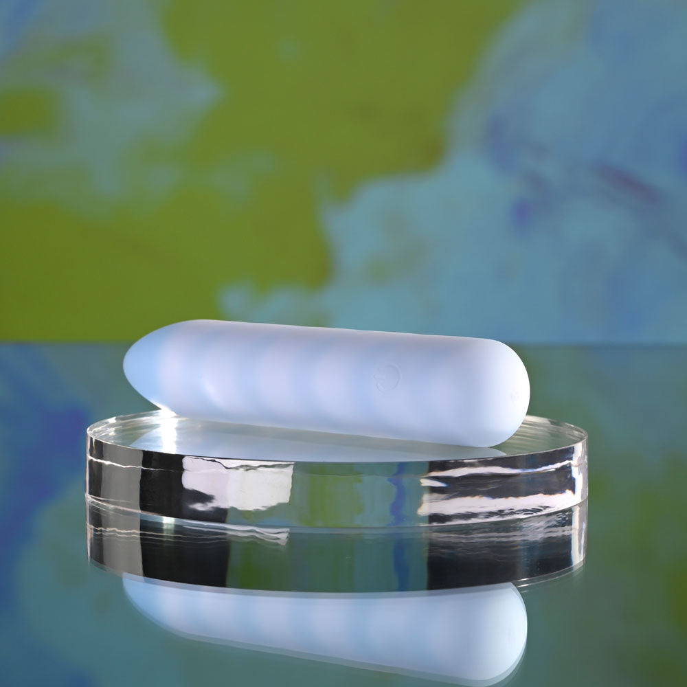 Dream big and sparkle even more with this Vibrating Bullet, designed to look just like a unicorn horn. Crafted from silky liquid silicone that feels wonderfully smooth against the skin, this powerful toy ends in a pointed tip that charms its way into those hard-to-reach spots, spreading intense waves of pleasure wherever it touches. Enjoy up to 10 speeds and rhythms as you admire the frosted effect of the white swirls on a dreamy powder blue. At last, a bullet vibe as magical and rare as you are! - Play with me (key feature): Bullet vibrator - Vibration: 10 speeds and rhythms - Material: Body-safe liquid silicone, phthalate- and latex-free - Waterproof and submersible: Yes - Warranty: Five years - Rechargeable: USB cable included - Height: 11.7 cm, depth: 2.5 cm, width: 2.5 cm - Insertable length: 8.3 cm, diameter: 2.5 cm
