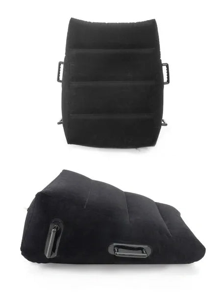 Indulge in your wildest fantasies with this Inflatable Position Master. The slanted, flocked design allows you to relax in any position without sliding off, while the EZ-Grip love handles are perfect for maintaining difficult positions without losing your rhythm. The air seal valve makes inflating the wedge a snap, and when the fun is over, simply deflate the Position Master and it's ready to go where you go. It's perfect for those romantic getaways and no one will know whats in your bag! Do it all with greater ease...no matter what position you're in! And lubricant doesn't even show up on the surface making it easy to clean, too! Holds up to 300 lbs. Inflatable dimensions are 14" tall tapering down to 7" tall, 31 1/2" long (end to end), and 24" wide. Includes: Inflatable Ultra Position Master with EZ-Grip Handles