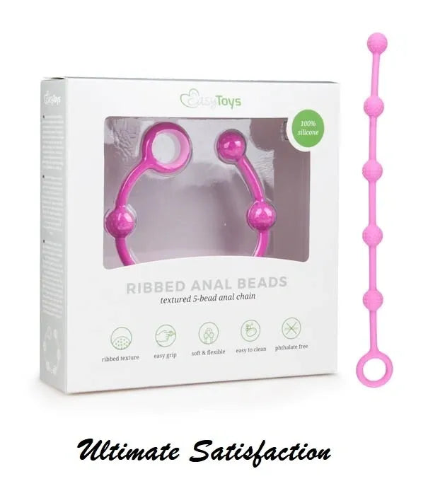These cute little beads are textured for some exciting anal play. They are the perfect size and shape for easy insertion and fantastic pleasure. Start with plenty of water-based lube and pull out at the point of climax for an intense sensation and an almighty release. These ribbed anal beads are designed to help you lose all restraint. Made from pure silicone, the 5-beaded chain will give you unending pleasure. Experience the most amazing orgasm of your life, one bead at a time! - Material: Silicone - Length: 23.50 cm - Insertion Depth: 21.00 cm - Minimum diameter: 1.20 cm - Maximum diameter: 1.20 cm