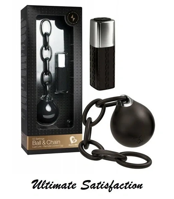 Any moment now... any... yes! Quiver and shake under the control of your partner. BALL & CHAIN is a remote control kegel ball that lets daring couples and singles take their fantasies out with them. Delicious arousal could come at any moment. How and when only heightens the pleasure. Any moment now... any... yes! Quiver and shake under the control of your partner. BALL & CHAIN is a remote control kegel ball that lets daring couples and singles take their fantasies out with them. Delicious arousal could come at any moment. How and when only heightens the pleasure. With a 10 metre remote radius, your date nights will never be the same again. Relish the anticipation of private pleasure in public places. 3 vibration and 7 pulsation settings place considerable power in your or a partner's hands; the power to use mischievously and have you begging for more. BALL & CHAIN is made from silky smooth silicone and its silicone rings make it easy to remove. BALL & CHAIN is also 100% waterproof so there's no escape in the bath, shower, sauna or swimming pool. Trust your partner to release you to pleasure. Live out your fantasies with BALL & CHAIN. 10 metre remote radius 10 powerful vibration and pulsation levels Fully waterproof Body safe silicone