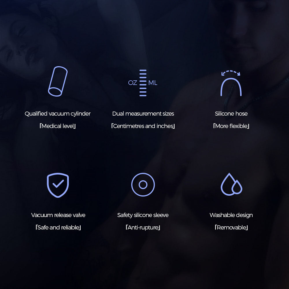 Get the fast, noticeable results you're craving for with LuvPump. This sturdy enhancement tool is the perfect blend of premium craftsmanship and durability, making it a must-have pump for men who love increasing their sensitivity and enlarging their penis, or achieve and maintain a strong erection. - Highest quality medical-grade cylinder with comfortable sleeve for better seal - 100% silicone hose never gets pinched and let the air pass freely - Clear vacuum tube with universal measurements - Quick release valve on the pump could break the suction easily and safely. - Easy-to-use pump handle with one handed action - Length: 20 cm - Inner Diameter: 5 cm How to use: 1. Lubricate the sleeve of the cylinder and your penis as well. 2. Insert your penis into the cylinder. The cylinder should remain firmly pressed against the base of your penis/pubic area to keep air from escaping 3. Slowly begin to work the pump. There will be a slight sensation of pulling on your penis as air is drawn from the tube. For beginners, it is important to start this process slowly to avoid discomfort. Remember to activate the vacuum release valve if it becomes painful. 4. Continue pumping/releasing air until you've found a level of pressure suitable for you. 5. Make sure no air escapes (unless needed) and wait 20 minutes. You may need to adjust the vacuum during this time to keep the appropriate amount.